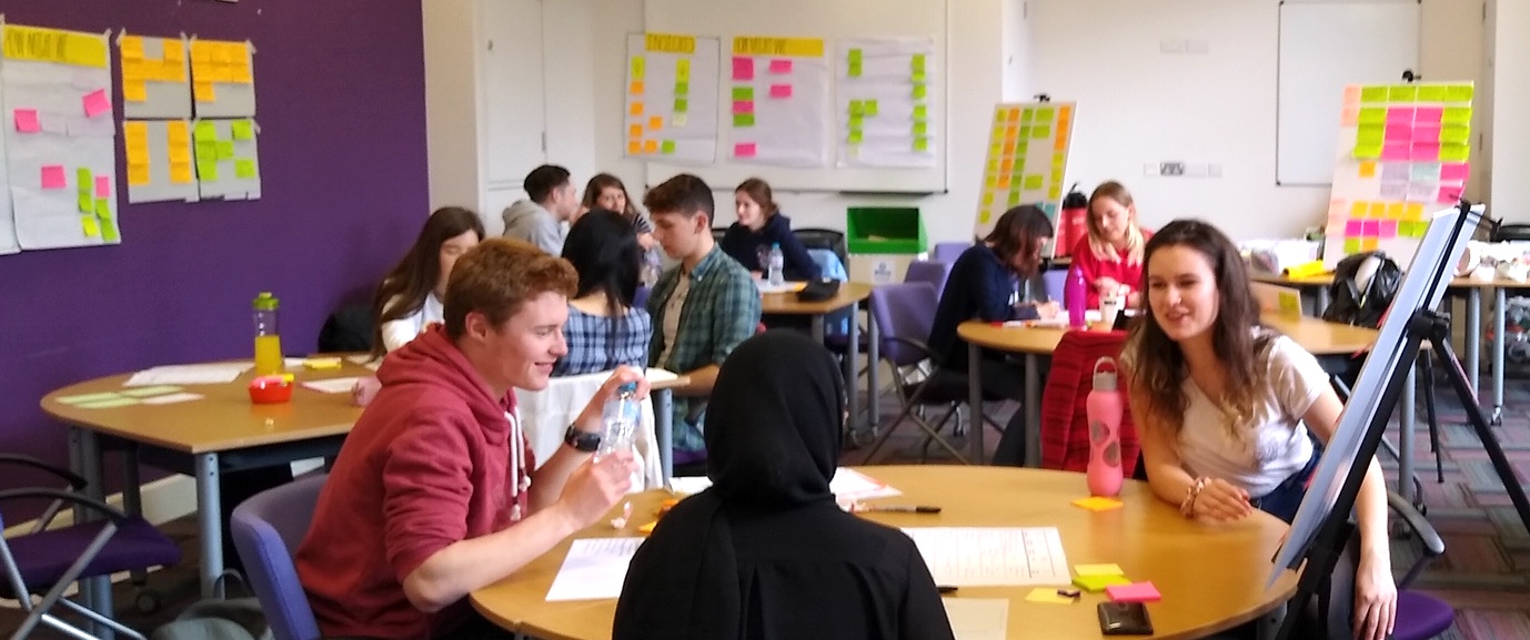 At Queens University Belfast, she conducts intensive four-day innovation boot camps where students come to develop the skills they need for their future careers. To raise the stakes, she enlists the help of local organizations (e.g. the Police Service, the Institute of Chartered Accountants, PwC, Allstate, Ernst and Young and KPMG), who are invited by the University to be “clients” for the students. They work together to come up with a realistic but manageable real-life problem for the students to solve.